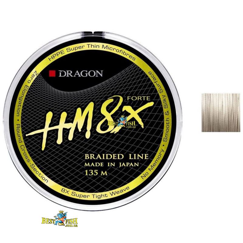 Поєднує надтонкі волокна HPPE і АМІЛА (арамідні волокна), сплетіння яких здійснюється за унікальною восьмижильний технології. У порівнянні з першим поколінням HM8X, HM8X Forte має більшу міцність і стійкістю до несприятливих зовнішніх факторів. Він також стійкий до стирання і абразиву, що значно підвищує термін служби шнура. Новий HM8X Forte має ідеально круглий перетин, гладкий і м'який на дотик, повністю позбавлений пам'яті і пружності, що дозволяє робити більш далекі і точні кидки. Міцність на вузлах ідентична лінійної міцності, а спеціальне покриття запобігає заплутування навіть при закиданні в сильний вітер і при скиданні петель.