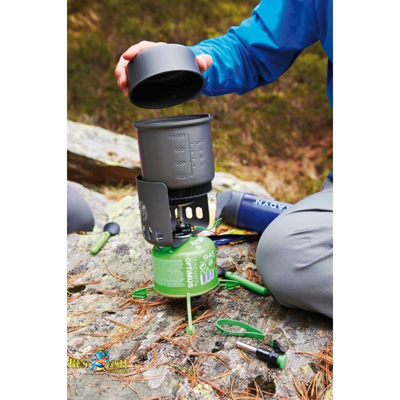 - Все части являются отдельными и взаимозаменяемыми с другими продуктами (котелок, крышку-сковородку, ветрозащиту и пьезоподжиг можно использовать с любой горелкой).
