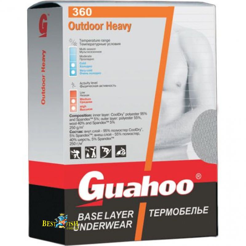 Кальсоны Guahoo OUTDOOR Light. Guahoo OUTDOOR– главной отличительной чертой термобелья этой серии является сочетание двух его основных функций: сохранение тепла и отвод влаги с поверхности тела. модели этой серии особенно подходят для охоты, рыбалки, туризма, активного отдыха в холодную и очень холодную погоду.используемые материалы: акрил, полиэстр CooLdry, Cordura, полиамид, полиэстр, полипропилен rifiL, Spandex, хлопок, шерсть мериносов, шерсть.