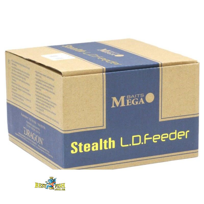 Серія безінерційних котушок MegaBaits Stealth LD Feeder розроблена експертами компанії Dragon для роботи в парі фідерним вудилищем або короповим. Шпуля містка, в поєднанні з рівною намотуванням шнура це сприяє далеким і точний забросам. Фрикційне гальмо, розташований в передній частині корпусу, складається з дисків збільшеного діаметру. Їх можна налаштувати в точності під умови лову. Корпус і ротор виконані з композитного матеріалу на основі графіту. Застосовується цифрова балансування обертових деталей SBS. Шпуля виготовлена з алюмінію, як і рукоять. Показник передавального числа дорівнює 5,5: 1.