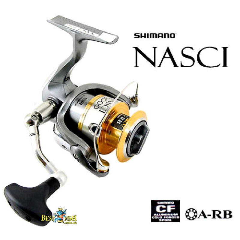 Серия безинерционных спиннинговых катушек Shimano Nasci – это качественные изделия от мирового лидера. В производстве используется много концепций и технологических решений, направленных на то, чтобы сделать катушку удобной в использовании, мощной и суперчувствительной. Четыре шарикоподшипника обеспечивают мягкий плавный ход. Благодаря новой концепции размещения подшипников - Floating Shaft II, трение возникающее в механизме минимально. Поэтому возникновение люфтов практически исключено. Сами подшипники выполнены из стали и покрыты антикоррозийным покрытием. Теперь рыболов может быть спокоен – появление ржавчины полностью исключено. Еще одна новинка - Aero wrap II. Эта концепция – эволюция Aero wrap II , направленная на уменьшение шума при выматывании. Одной из главных характеристик, которой определяется ценность катушки является то, как она укладывает леску. У катушек серии Nasci эта характеристика отвечает самым высоким стандартам. Шпуля AR-C spool способствует улучшению этого показателя, а так же увеличению дальности заброса. Решением проблемы закручивания лески стала система POWER ROLLER исключающая этот неприятный момент. В целом катушка имеет красивый дизайн, удобную рукоятку, две запасные алюминиевые шпули. Хороший выбор для тех, кто хочет получать максимальное удовольствие от процесса рыбалки.