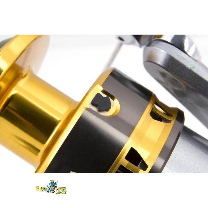 - G Free Body — Смещение центра масс катушки ближе к удилищу был достигнуто с помощью смещения механизма лесоукладки вверх на 19 мм. Смещая центр масс ближе к руке рыболова, технология G FREE BODY повышает качество заброса, одновременно снижая нагрузку на руки рыболова.