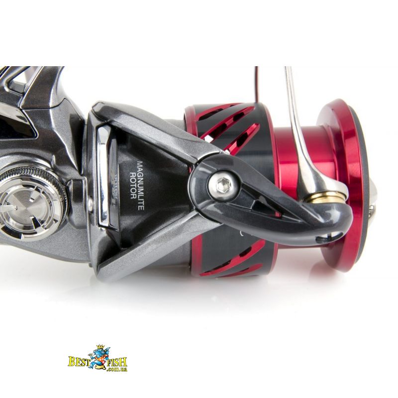 Новий дизайн ротора Magnumlite забезпечує безпрецедентну легкість обертання. Профіль ротора, який був раніше симетричний, тепер став асиметричним. Механізм дужки, який раніше розміщувався на одній стороні разом з роликом лескоукладивателя, тепер розміщений на протилежному боці. Це покращує баланс і в поєднанні з легким роликом лескоукладивателя, титанової дужки і оптимального розташування потовщення ротора, дозволяє зберігати 14% інерції обертання, що виводить чутливість на новий рівень. - ARC Spool