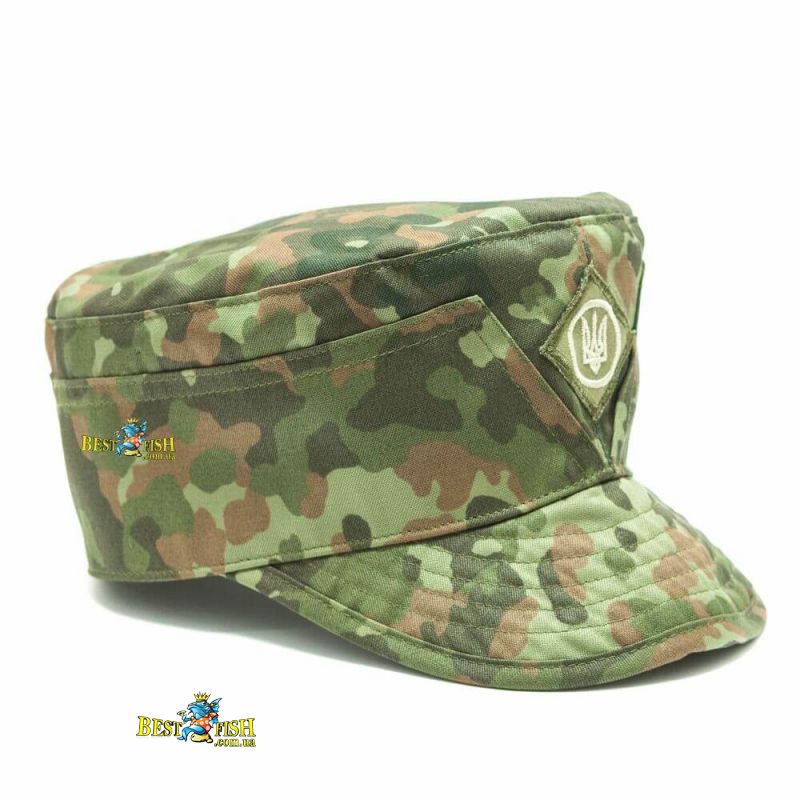 - Спереди кепи украшает нашивка с национальным гербом - тризубом.