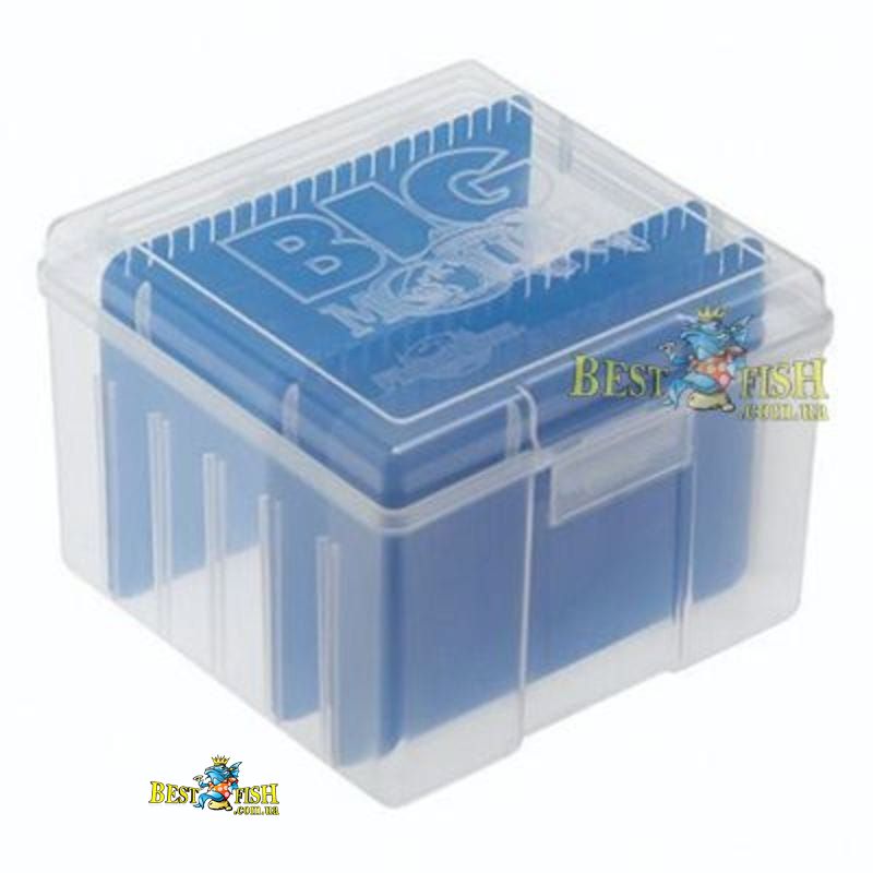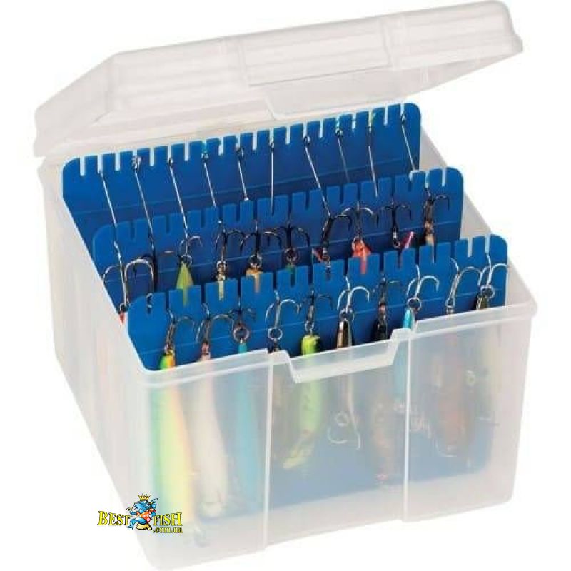Містка коробка для зберігання спиннербейтов. Виготовлена з прозорого пластика з внутрішньої обробкою полімером Zerust, який не дозволяє утворюватися корозії на металевих елементах. Є можливість перевстановлення перегородок.