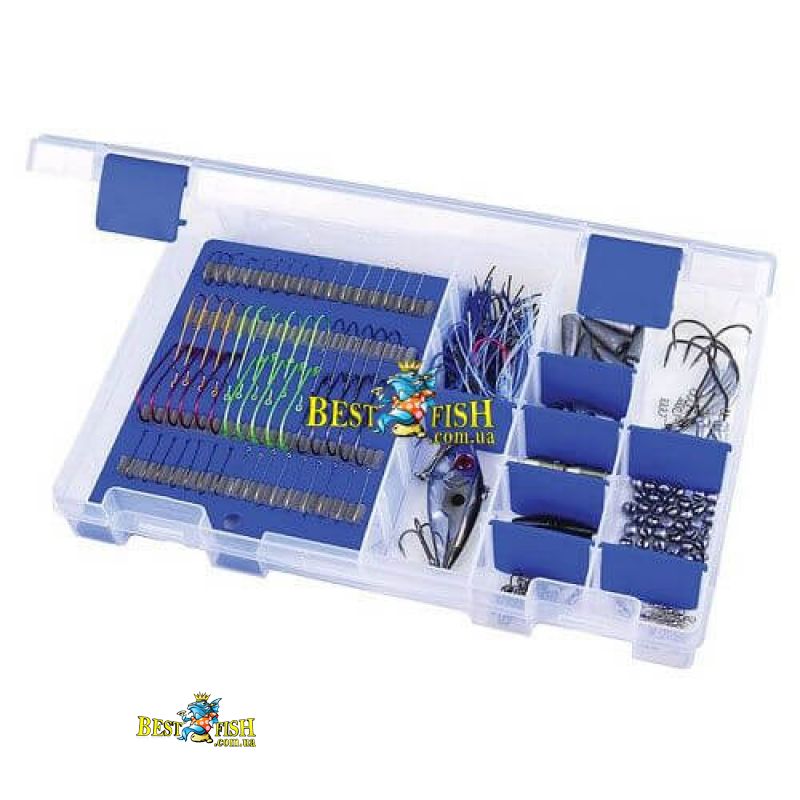 Коробка призначена для зберігання гачків різних розмірів, мормишок, штучних мушок, вантажив для поплавковою лову, вертлюжків, карабінів, застібок і іншої корисної для рибалок дрібниці. Усередині вироби є одне велике відділення з м'яким поролоновим вкладишем. На ньому зручно розміщувати гачки, блешні і мушки. Три сусідніх відділення призначені для зберігання дрібних рибальських аксесуарів. Завдяки знімним перегородок рибалка може формувати відсіки потрібної довжини. Всередині коробка оброблена спеціальним полімером ZERUST, який перешкоджає утворенню корозії на металевих частинах оснасток. Коробка зроблена з прозорого пластика.