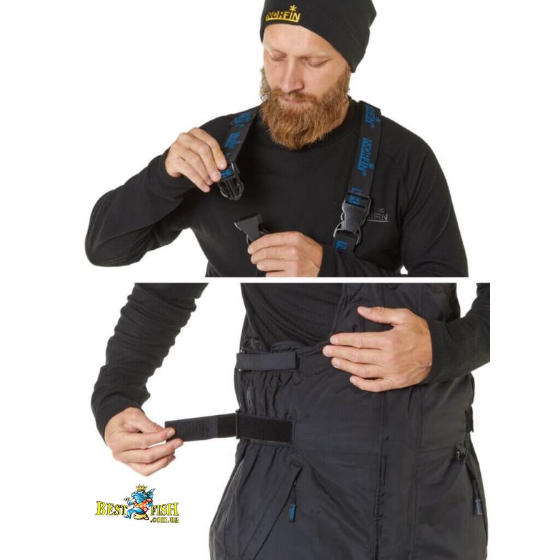 Виріб складається з куртки і напівкомбінезона, які пошиті з фірмового багатошарового матеріалу Nortex Breathable, де кожен шар виконує певні функції. Зовнішній шар надійно захищає від сильного вітру і дощу, середній виконує теплоізоляційну функцію, а внутрішній - виводить надлишкову вологу, яка утворюється при активних рухах. Norfin Verity пропонується в двох кольорах: чорному і червоному.