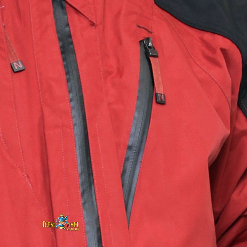 Виріб складається з куртки і напівкомбінезона, які пошиті з фірмового багатошарового матеріалу Nortex Breathable, де кожен шар виконує певні функції. Зовнішній шар надійно захищає від сильного вітру і дощу, середній виконує теплоізоляційну функцію, а внутрішній - виводить надлишкову вологу, яка утворюється при активних рухах. Norfin Verity пропонується в двох кольорах: чорному і червоному.