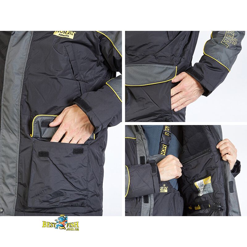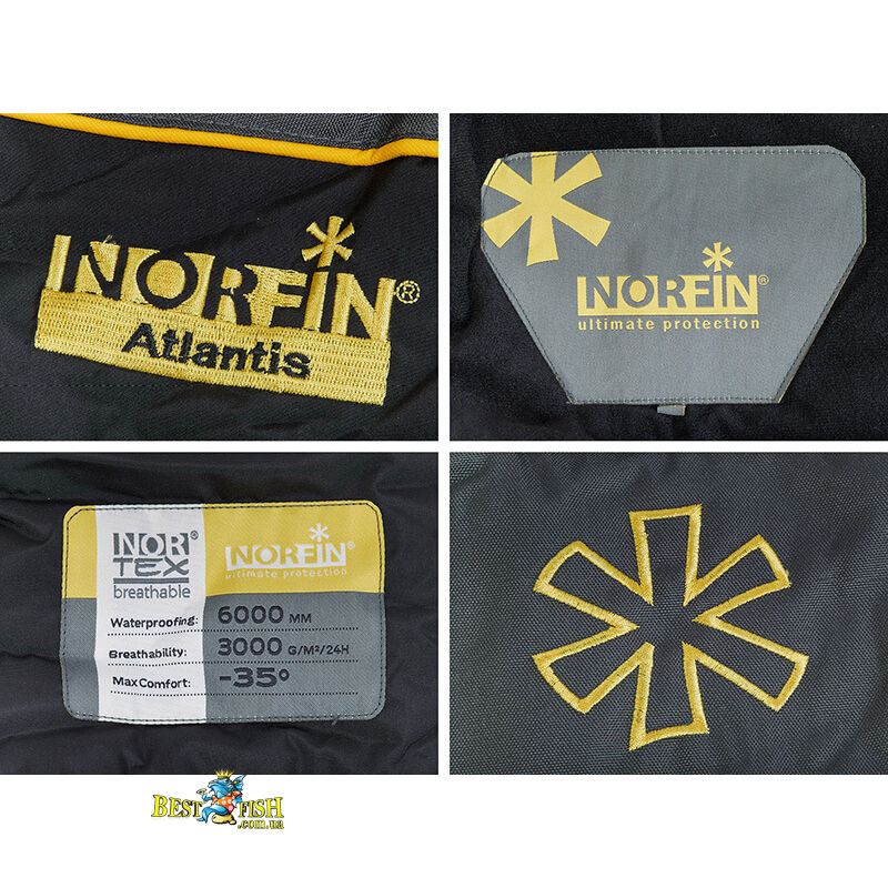 Висококласний чоловічий зимовий костюм Atlantis, що складається з куртки і напівкомбінезона виконаний з мембранної тканини Nortex breathable, за короткі терміни зайняв лідируючу позицію серед новинок, розроблених компанією Norfin.
