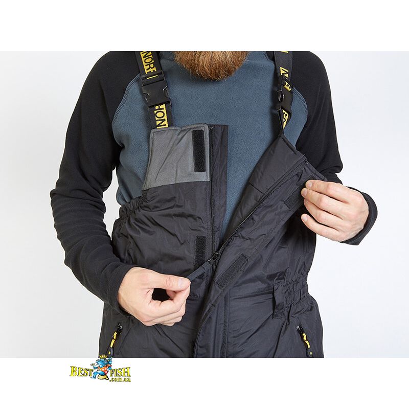 Даний костюм без зусиль справляється з відведенням вологи до 6000 мм. При цьому за рахунок додаткового утеплення м'якою вставкою в області колін і знімною вставкою на стільці ви можете проводити максимальну кількість часу на рибалці без остраху обмороження, що важливо для любителів зимової ловлі.