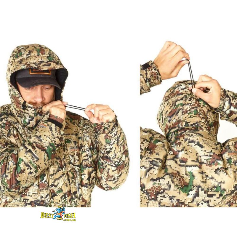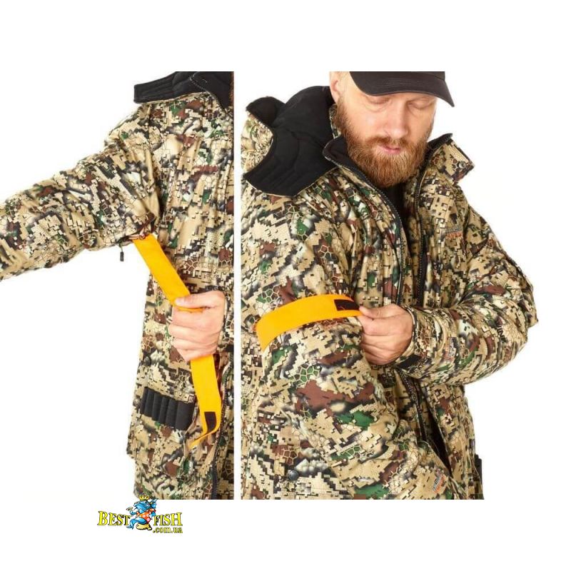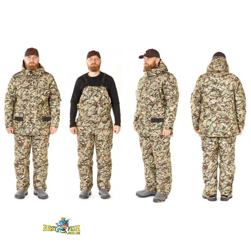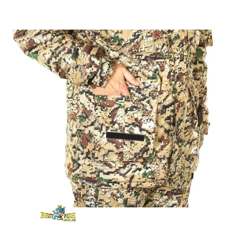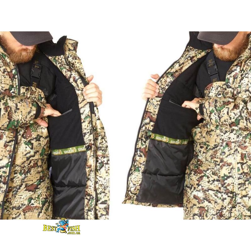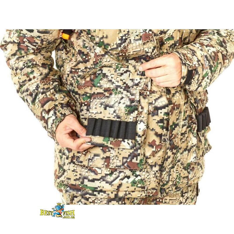 Мисливський костюм з НЕ шарудить матеріалу, виготовленого за технологією Norfin Silence. Костюм призначений для експлуатації при температурі до-20 ° С. У верхній частині кожного кишені є інтегровані патронташі. Для зручності мисливця, плечі куртки посилені протівоскользящімі накладками.