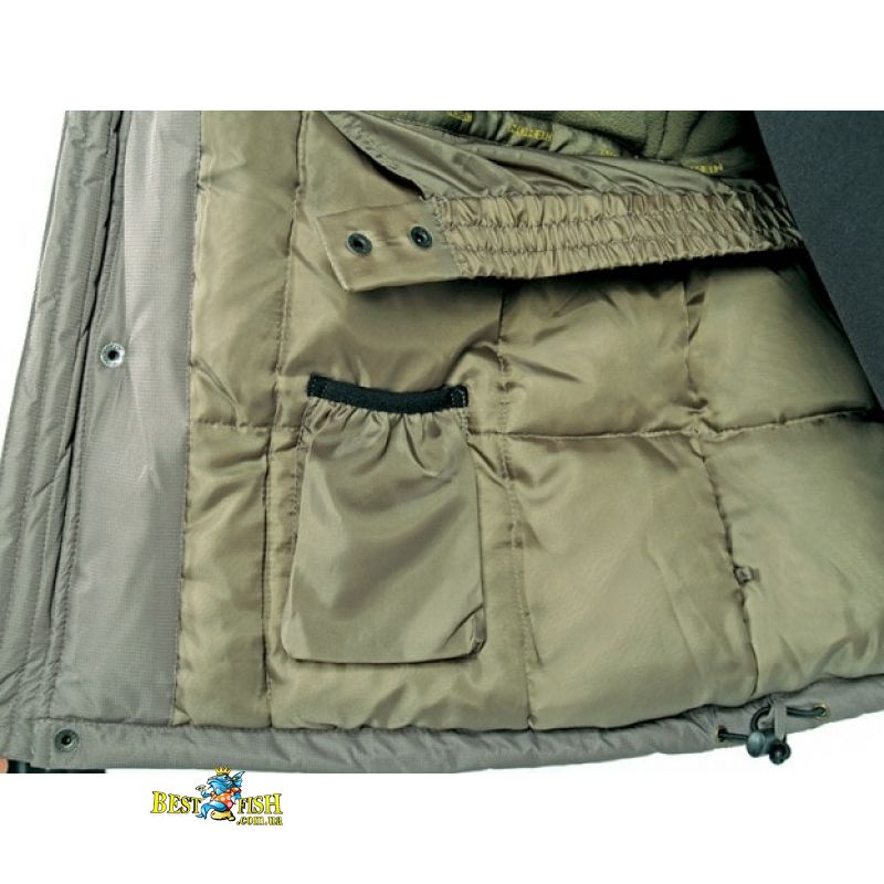 Костюм пуховий, зимовий NORFIN POLAR. Дуже теплий костюм з утеплювачем з пуху і пера. Призначений для експлуатації при температурі до -40°C . Костюм розроблений як одяг для зимової риболовлі, з повною адаптацією для їзди на снігоходах. Мембранна тканина.