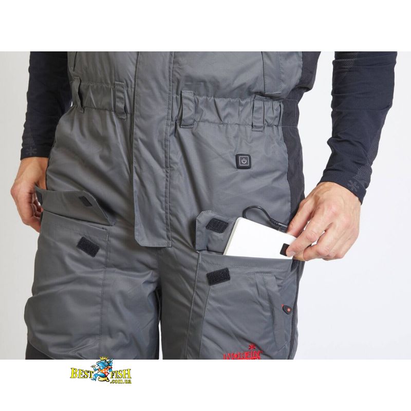 Костюм зимовий Norfin Discovery Heat з системою електричного обігріву - HEATS. Експлуатація до температури -40 ° C. Мембранна тканина. Проклеєні шви. Нагрівальні елементи знаходяться в напівкомбінезоні в районі попереку і стегнах. Підключення до акумуляторної батареї через USB-роз'єм в кишені напівкомбінезона. Мінімальні параметри батареї power bank (в комплект не входить) -2,1 Ач, 5-12 вольт. Костюм можна чистити в хім-чищенні, що спеціалізується на одязі з мембранних тканин. Сумка для перенесення і зберігання.