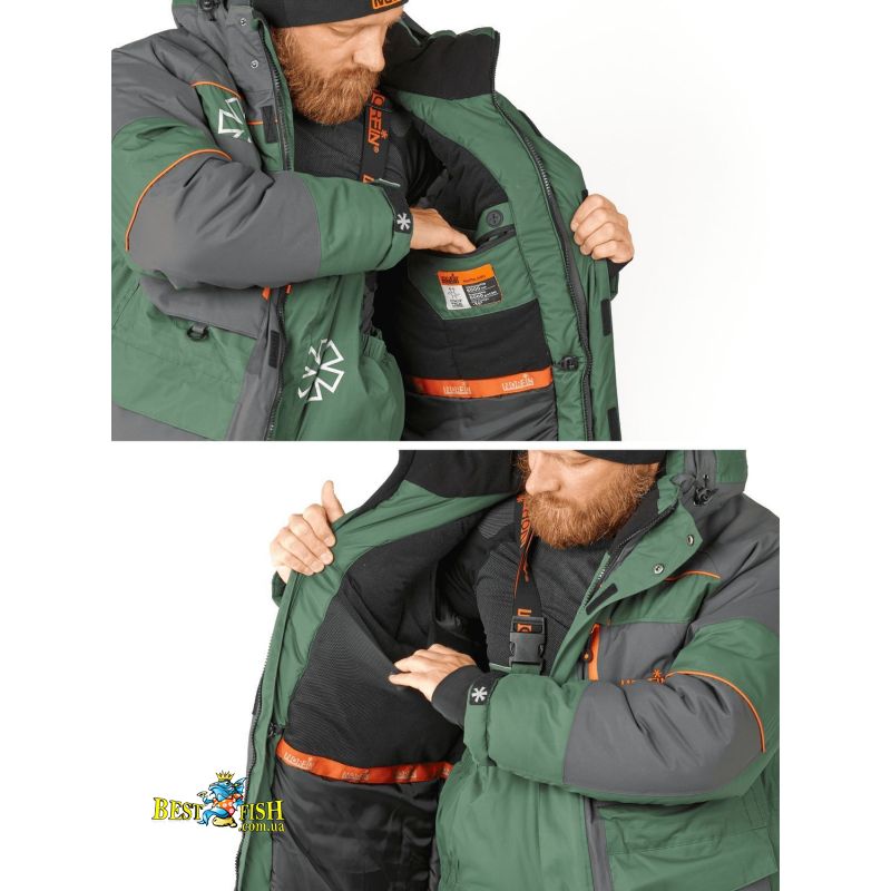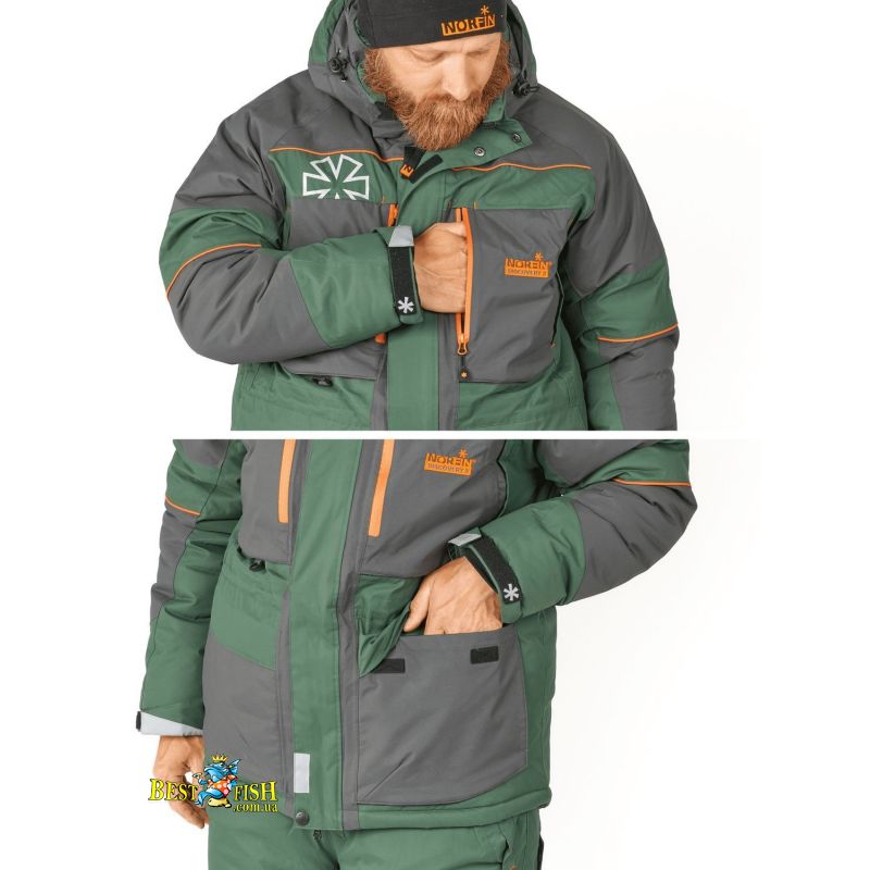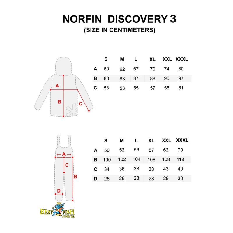 Norfin Discovery 3 GR - теплий зимовий костюм для риболовлі й активного відпочинку, створений для використання в сувору холодну погоду. Мембранний матеріал NORTEX BREATHABLE забезпечує захист від вологи та вітру, а утеплювач Hollofil допомагає зберігати тепло навіть під час тривалого перебування на морозі. Костюм має ергономічний крій, світловідбивні елементи безпеки та посилення у важливих робочих зонах. Практичне поєднання функціональності, комфорту та надійного захисту робить цю модель популярним вибором серед зимових рибалок.