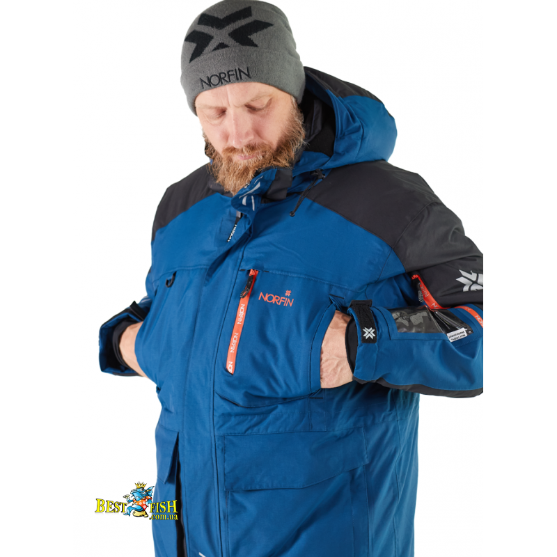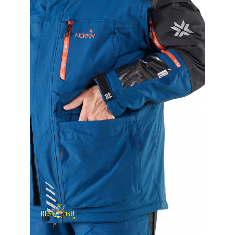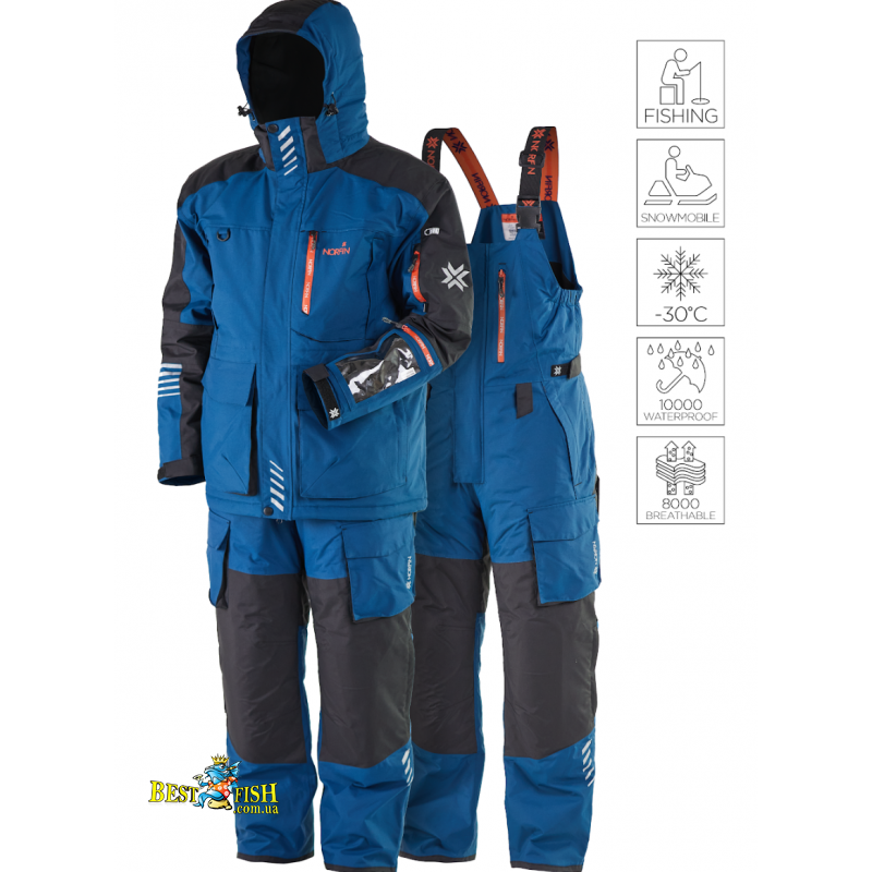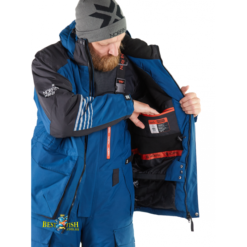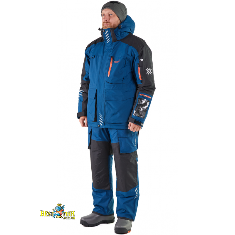 Norfin Tornado Pro Magnet - технологічний зимовий костюм для риболовлі та активного перебування на природі в холодну пору року. Модель побудована на основі мембранної тканини NORTEX BREATHABLE та утеплювача 3M Thinsulate, що дозволяє поєднати тепло, невелику вагу й надійний захист від вітру та опадів. Особливістю цієї версії є система магнітних фіксаторів на захисних клапанах, завдяки якій костюмом зручно користуватися навіть у рукавичках. Продуманий крій, вентиляція, високий комір, посилені зони та численні регулювання роблять модель практичною для тривалих зимових виїздів.