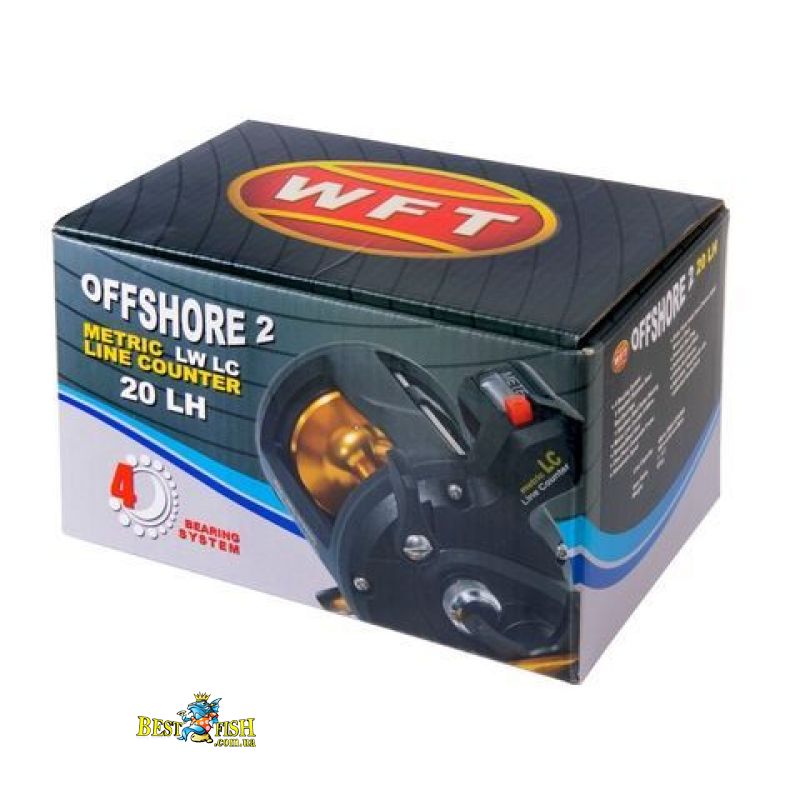 WFT Offshore II LW LC 30 RH (1D-A 010-030) — морський мультиплікатор німецького бренду WFT серії Offshore II. Клас Offshore — для важкої морської ловлі у відкритому морі, берегового троллінгу та глибинного джигу. Корпус з анодованого алюмінію з посиленими бічними пластинами. Level Wind (автоматичний укладач) рівномірно накладає шнур на шпулю під час змотування. Вбудований механічний лічильник шнура (Line Counter) показує довжину випущеного шнура в метрах — критично для троллінгу й глибинного відпуску приманки. Фрикціон Star Drag з металевими дисками — максимальний тиск 8-10 кг. Головна пара посилена, зубчасті колеса з нержавіючої сталі. Підшипники (4 шт.) — нержавіючі кулькові у критичних вузлах. Передача 4.5:1, вага 620 г, місткість 0.45-400. Цільова риба — тунець, скумбрія, тріска, палтус, лубіна, сом (на річковому троллінгу). Техніки — морський троллінг, боттом-фішинг, відвесне блеснення, глибинний джиг 50-200 м. Розмір 30 — середньоморський для серйозного троллінгу й глибинного джигу до 150 м. Місткість 400 м плетінки PE #4 для відпуску на глибину.
