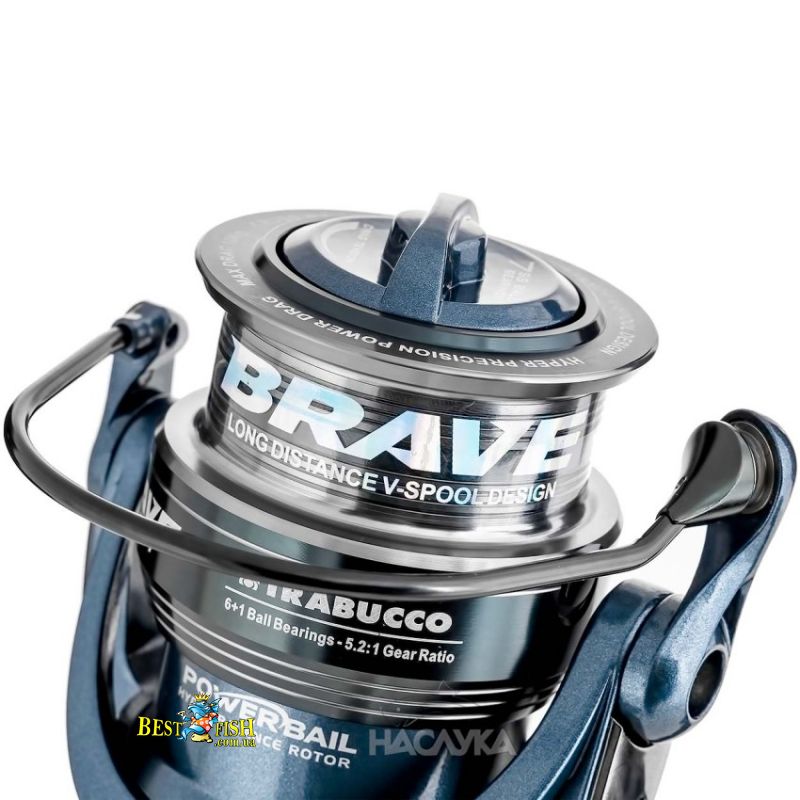 Котушка Trabucco Brave Fa 4500 (034-19-450) — безінерційна котушка, розрахована на фідерну та матчеву риболовлю, коли потрібні акуратна подача оснастки, стабільна робота механізму та зручне керування під час серійних закидань. Модель у типорозмірі 4500 оснащена переднім фрикціоном, має 6+1 підшипників, передавальне відношення 5.2:1, місткість шпулі 0.20-180 та вагу 280 г. Таке поєднання характеристик добре підходить для лову на стоячій воді, каналах і річках із помірною течією. Котушка не виглядає перевантаженою, тому її зручно використовувати впродовж усього рибальського дня.