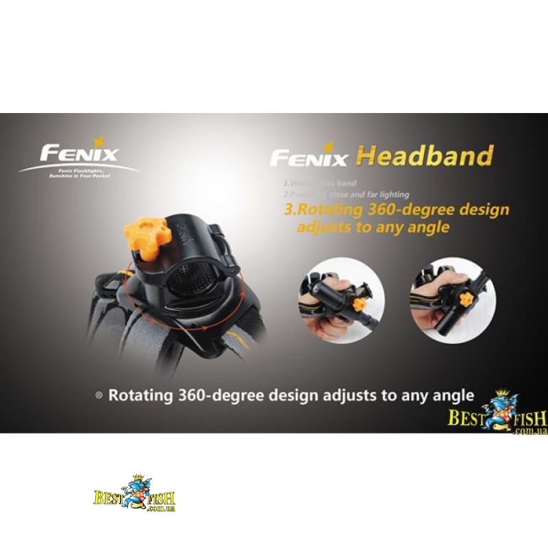 Фонарь закрепляется в боковом пластиковом креплении. Его диаметр тоже можно регулировать при помощи винта, но этот диапазон не столь широк как для эластичных ремней. К данной модели крепления подходят фонари Fenix из серий LD и PD с диаметром корпуса 18-22 мм. Это крепление изготовлено из жесткого и прочного пластика, достаточно легкого, чтобы быть комфортным для ношения на голове. Кроме того, внутренняя часть крепления прорезинена, что обеспечивает надежную фиксацию фонаря и оберегает его от появления на корпусе царапин. Направление света фонаря можно выбрать благодаря поворотному механизму крепления. Он поворачивается на 360°, таким образом, чтобы каждый пользователь в зависимости от ситуации мог установить наиболее оптимальное положение фонаря.
