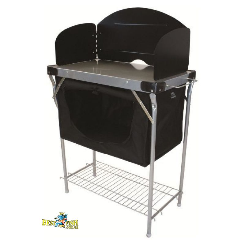 Для тех, кто привык к полноценному дневному меню, походная кухня Highlander Steel Kitchen Stand With Cupboard в палаточном городке будет весьма к стати. Она поможет организовать удобное место для приготовления пищи, ускорить и оптимизировать этот процесс. Высокая встроенная ветрозащита - важный аксессуар, защищающий с трех сторон газовую горелку или плиту от ветра. Большой текстильный шкаф и решетчатая полка позволят разместить все необходимые продукты и посуду. Кухня выполнена из качественных материалов (сталь, алюминий, МДФ плита, плотный полиэстер), компактно складывается для хранения и транспортировки. Походная кухня Highlander Steel Kitchen Stand With Cupboard, безусловно, добавит комфорта Вашему досугу.