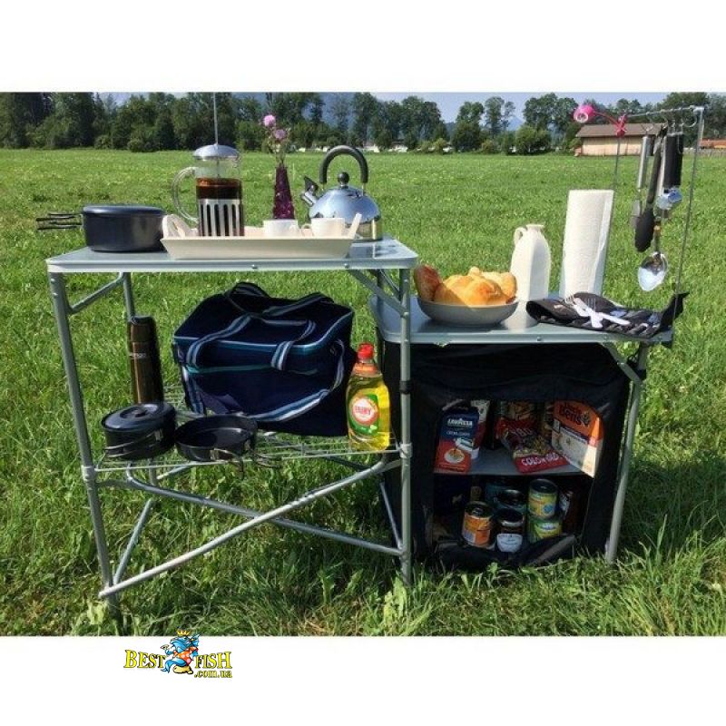 Отдых в палаточном городке не обходится без приготовления еды. Походная кухня Vango Bistro DLX 2 позволит ускорить и оптимизировать процесс приготовления пищи, сделав его более удобным и организованным. Кухня имеет две рабочих поверхности в разных уровнях, что гораздо удобней по сравнению с одной поверхностью той же самой площади. Для хранения посуды и продуктов предусмотрен закрывающийся на молнию текстильный шкаф с двумя полками и дополнительная горизонтальная полка. Боковой сетчатый отсек можно использовать как для мусора, так и для моющих средств. Располагая этим широким функционалом, кухня компактно складывается по форме прямоугольного чемоданчика, удобного для транспортировки и хранения. Vango Bistro DLX 2 создаст желаемый уровень комфорта, где бы вы ни были, будь-то в кемпинге, на даче, или просто на отдыхе на природе.