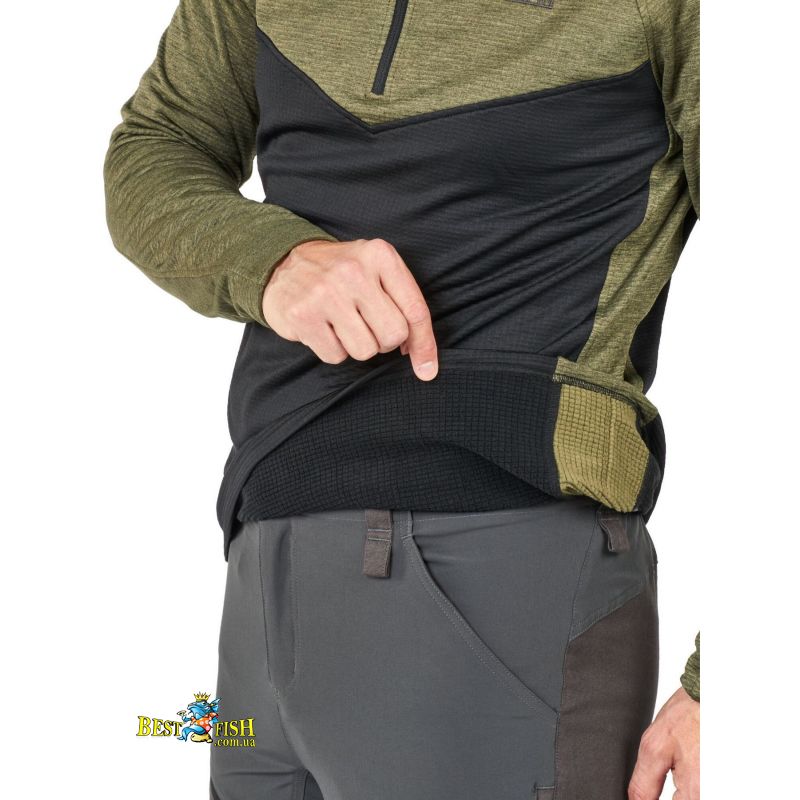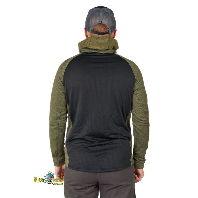 Флісова куртка Norfin Trail - це функціональна модель для активного відпочинку, риболовлі, походів і щоденного носіння в прохолодну погоду. Матеріал із ячеїстою структурою добре відводить зайву вологу, швидко висихає та допомагає підтримувати комфорт під час руху. Завдяки поєднанню поліестеру і спандексу тканина залишається приємною до тіла, достатньо еластичною та практичною в догляді. Куртка може використовуватися як самостійний верхній шар або як додатковий утеплювальний шар у багатошаровій системі одягу. Капюшон і високий комір підвищують комфорт у вітряну погоду, а стриманий оливково-чорний дизайн робить модель універсальною для природи та міста.