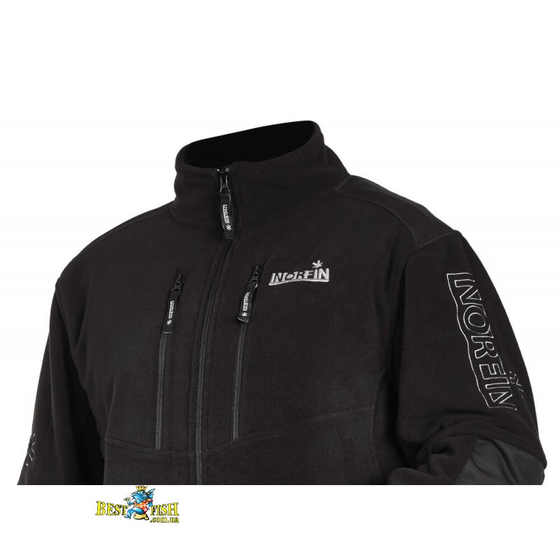 Куртка флісова Norfin Glacier відмінно підходить для відпочинку на природі в холодну і прохолодну погоду. Модель оснащена чотирма зовнішніми кишенями, два з яких знаходять на грудях, все кишені на блискавці., Сама куртка так само повністю на блискавки. Високий комір куртки і фіксатор стягає низ куртки максимально забезпечує захист від вітру і холоду. Лікті, кишені і плечі захищені додатковим матеріалами, що подовжує довговічність вироби.