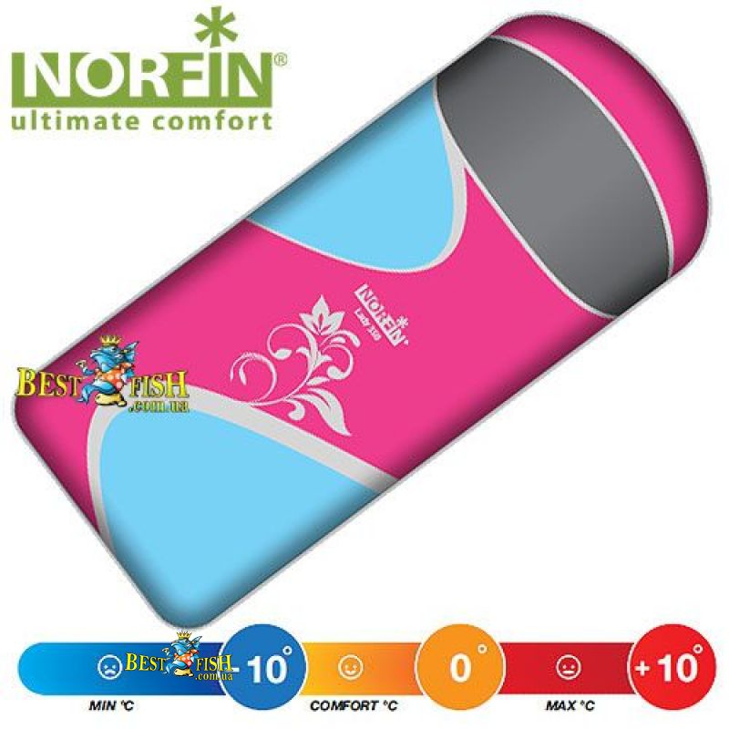Спальний мішок-ковдра Norfin LADY 350 NFL. Спальний мішок-ковдра розрахований на три сезони використання. Дизайн і розміри цього мішка ідеальні для жінок, любителів риболовлі, відпочинку на природі, або бажаючих скласти компанію своїм рибалкам. Виконано в варіантах з правого і лівого блискавкою, має можливість состёгівать два спальника в один.