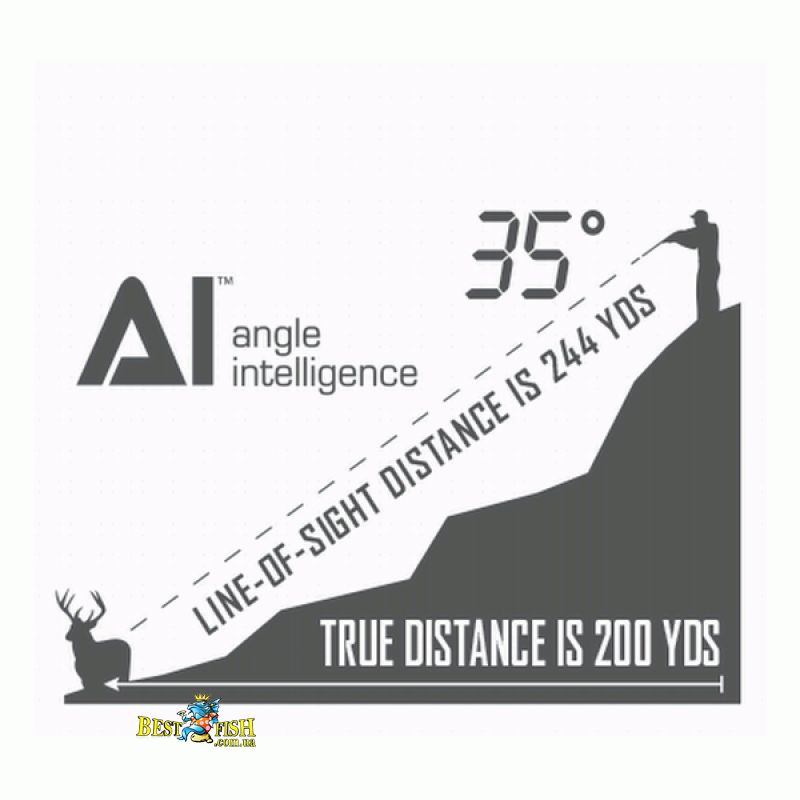 Технология Angle Intelligence позволяет точно определять и учитывать угол наблюдателя по отношению к объекту наблюдения и вносить необходимые коррективы в измерения реальной дистанции до объекта.
