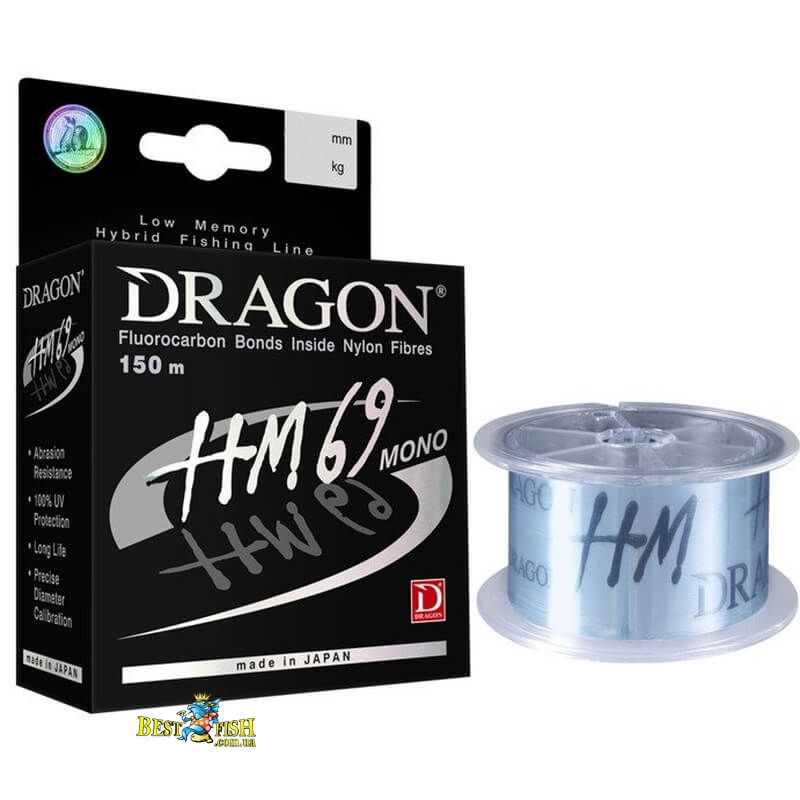 Гібридна волосінь HM69 від польської компанії Dragon виготовляється за допомогою фторування нейлону на основі удосконаленої технології кристалізації, завдяки чому, на молекулярної основі зміцнюються волокна нейлону.