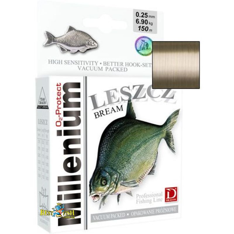 Професійна, високочутлива моно-волосінь Millenium Leszcz з обмеженою розтяжністю від польської компанії Dragon, призначена для лову мирної риби, зокрема - ляща, і інших глибоководних коропових.