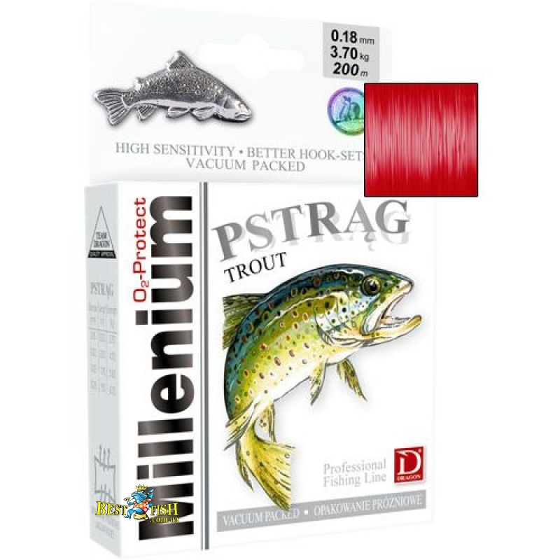 Професійна моно-волосінь Millenium Pstrag від польської компанії Dragon, є однією з кращих снастей для лову форелі. Міцна волосінь володіє чудовою стійкістю до стирання і має прекрасний захист від УФ-випромінювання.