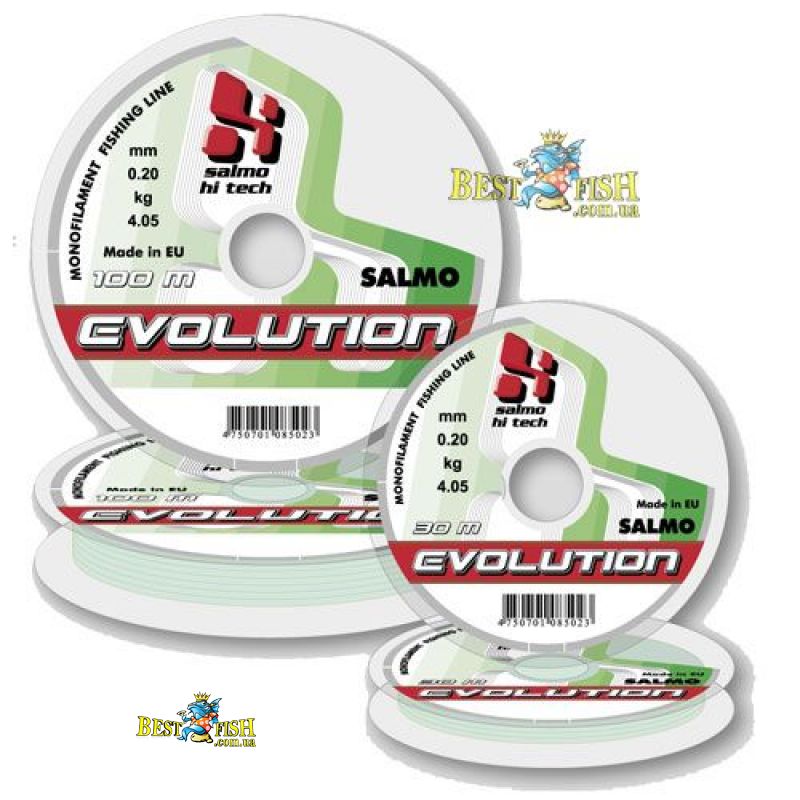 Леска монофильная Salmo Hi-Tech EVOLUTION 100/040. Для прочности этой монолески в ее химический состав введены специальные компоненты. Леска с низким коэффициентом растяжения, но достаточно эластичная для смягчения рывков рыбы во время вываживания. Мягкая леска окрашена в маскирующий под водоросли светло-зеленый цвет.