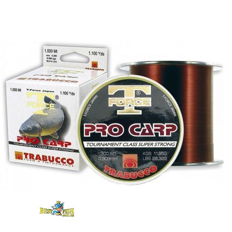 Trabucco T-Force Pro-Carp найвища розривна навантаження, абразивна стійкість і низька еластичність дозволяє боротьбу з великим коропом навіть на найдальшої дистанції.