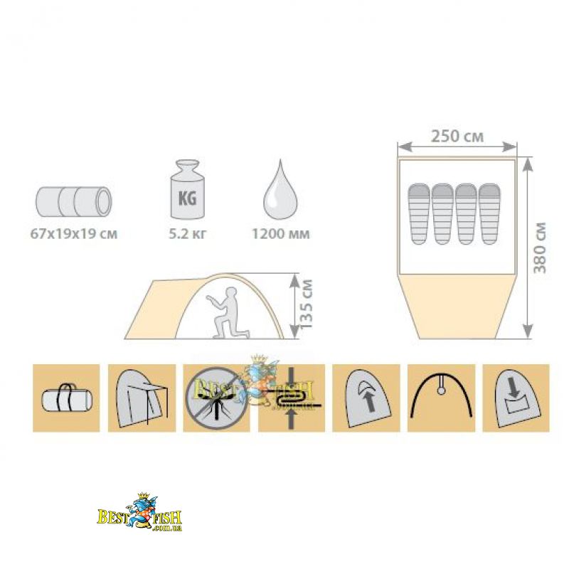 Размер наружной палатки (см) 380 x 250 x 135