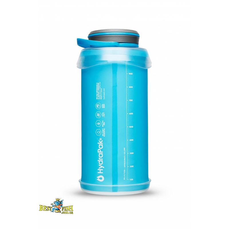 HydraPak Stash 1L — практичная компактная мягкая бутылка с ярким дизайном. Вдвое легче жестких аналогов. Помогает экономить место в рюкзаке: в сложенном виде занимает лишь четверть от полного объема.