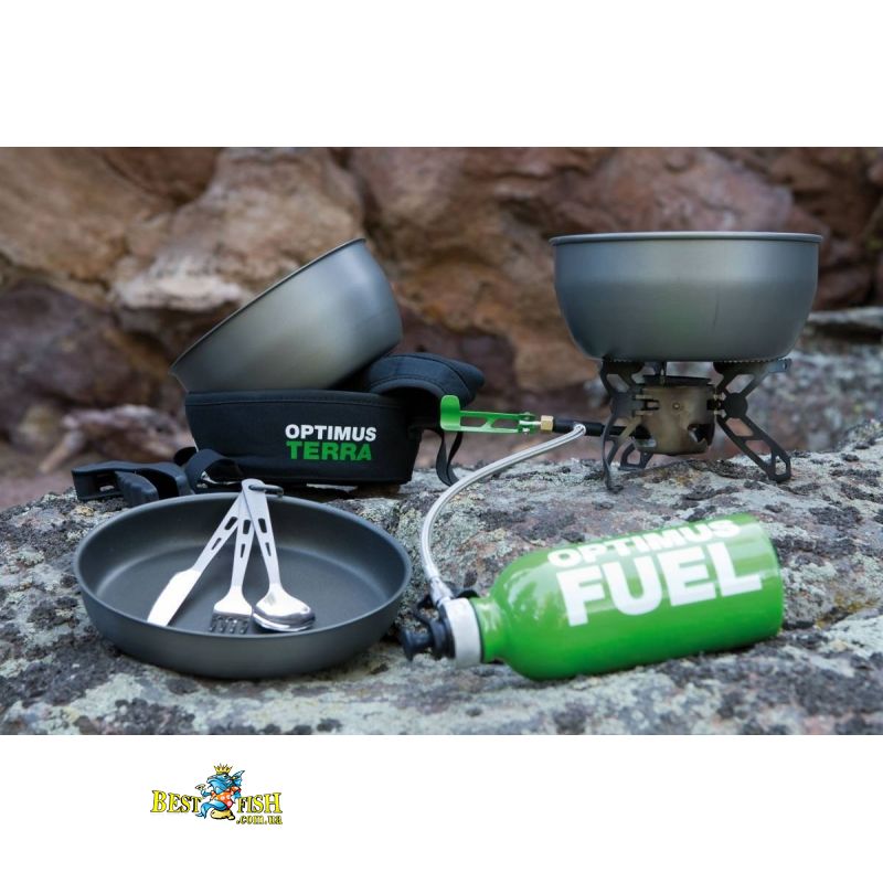 Набор из трех ультралегких титановых столовых приборов: ложка, вилка, нож, скрепленные карабином. Все приборы имеют матовую ручку, удобно лежащую в руке, и полированную пищевую часть.
