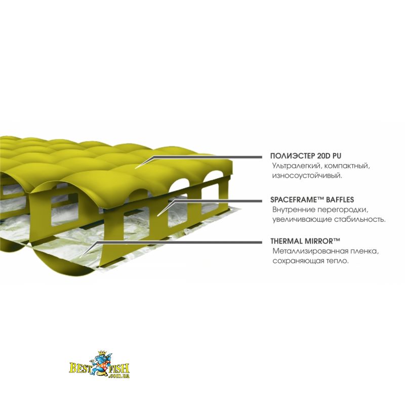 - Термоизолирующий слой Thermal Mirror™ из бесшумной метализированной пленки.