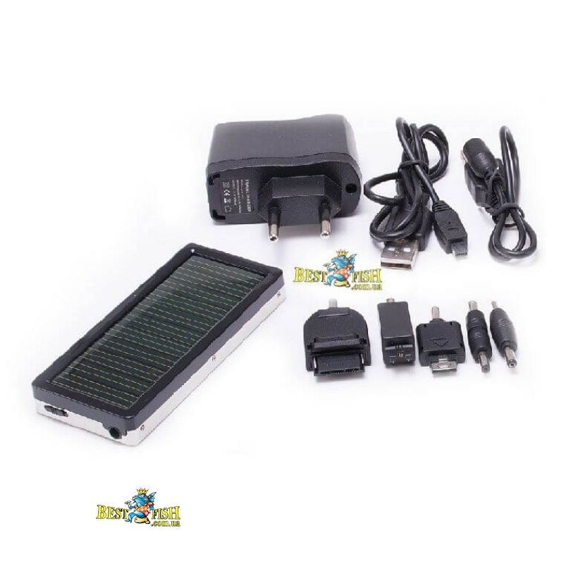 Накопичувач на сонячній батареї панель 5.5V, 80mA, батарея Li-ion 3.7V, 1350mAH, що заряджається від мережі і через USB. Можлива так само зарядка через вбудовану сонячну панель. Прилад дозволяє проводити зарядку, підзарядку і харчування різних пристроїв. Накопичувач має компактний розмір і дуже простий в експлуатації. Прилад комплектується блоком живлення, USB кабелем і набором адаптерів.