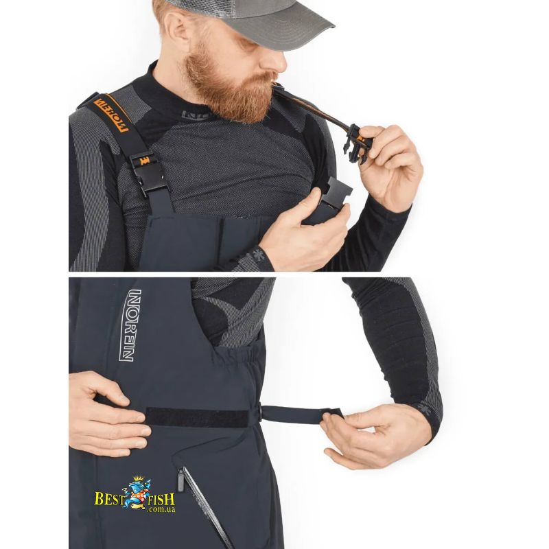 Norfin Rebel Pro Pants Gray - це демісезонний утеплений напівкомбінезон для риболовлі та активного відпочинку в холодну, вітряну й вологу погоду. Модель виготовлена з двошарового мембранного матеріалу Toray Dermizax, який поєднує високий рівень водозахисту, добру паропроникність і комфорт під час руху. Легкий утеплювач 3M Thinsulate 100 г допомагає зберігати тепло в міжсезоння та в прохолодні дні, не створюючи зайвого об'єму. Напівкомбінезон добре захищає поперек і корпус від вітру, а продуманий крій не сковує рухів під час ходьби, сидіння в човні чи роботи зі снастями. Це практичний вибір для тих, кому потрібен надійний мембранний низ до комплекту або окремого використання в складних погодних умовах.