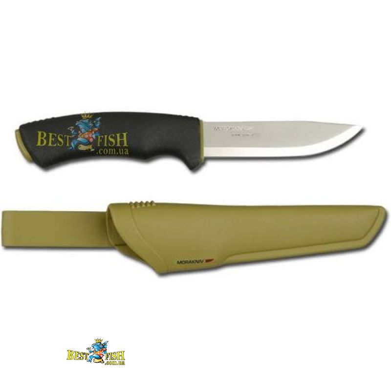 Нож Mora kniv™ Bushcraft Force из холоднокатаной нержавеющей стали (S) производства компании SANDVIK. Эта модель ножа без утончения в передней части, поэтому более тяжелая, более крепкая и очень удобная для разделки животных. Нож имеет эргономическую рукоятку черного цвета и комплектуется пластиковыми ножнами оливкового цвета с креплением к поясу.