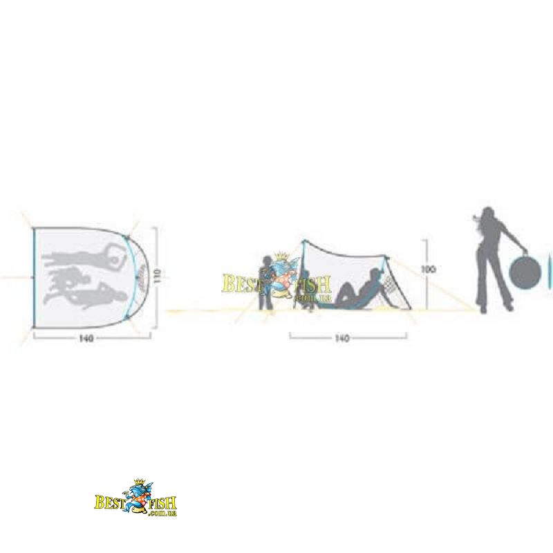 - Габариты внешней палатки (ДхШхВ), мм: 1400x1100x1000