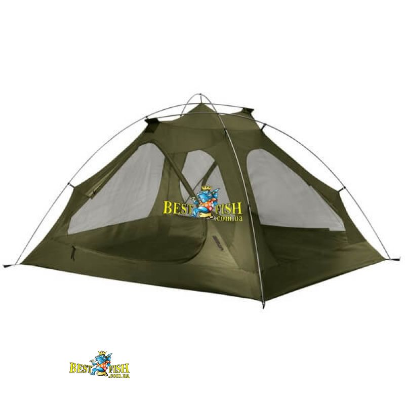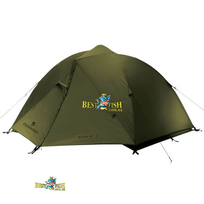 Ferrino Aerial 3 Olive Green наиболее подойдет для продолжительных походов в теплое время года, внутренняя палатка на 50% состоит из москитной сетки, её можно использовать отдельно от внешнего тента в теплые ночи. Палатка имеет по одному тамбуру и по одному входу с противоположных сторон, позволяя трем персонам достаточно комфортно пользоваться ею, не не слишком стесняя друг друга. При этом установка такой палатки в хорошую погоду не требует фиксации колышками и растяжками.