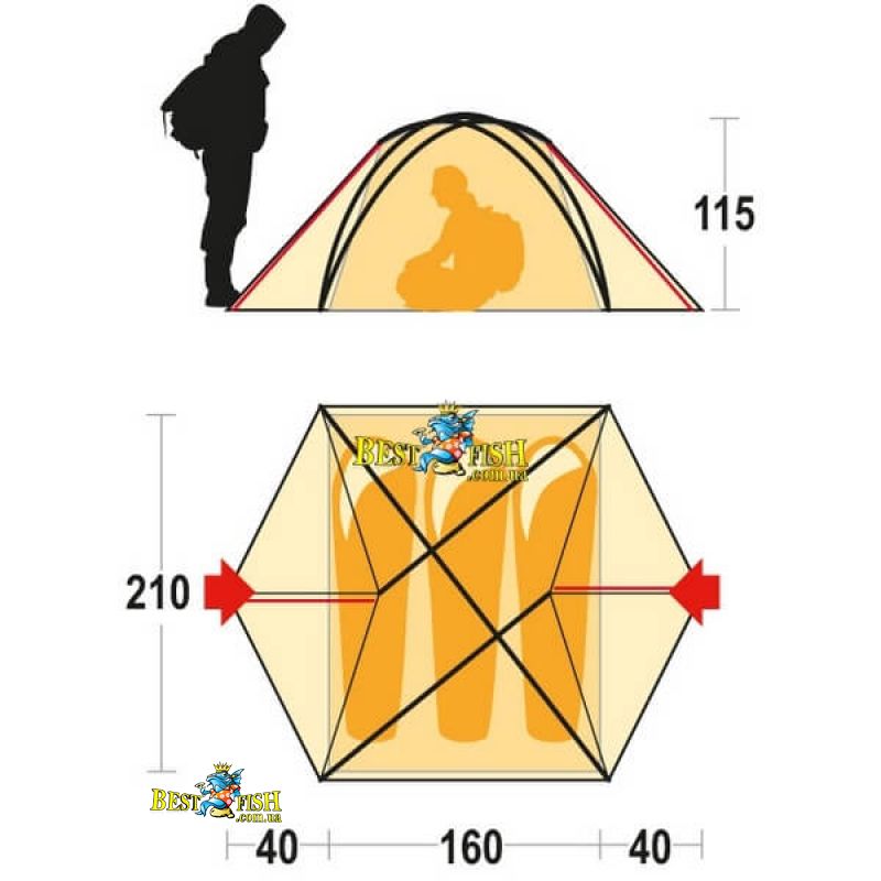 • Внутренняя палатка (ДхШхВ), мм: 2100 х 1600 х 1150