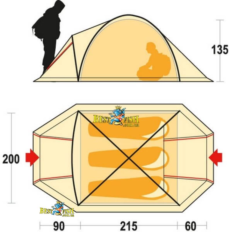• Обидва входу в намет оснащені москітною сіткою