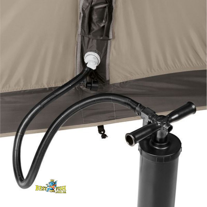 - Повністю надувний каркас намету складається з трьох незалежних надувних арок, що забезпечує крім швидкої установки ще й стабільність конструкції.