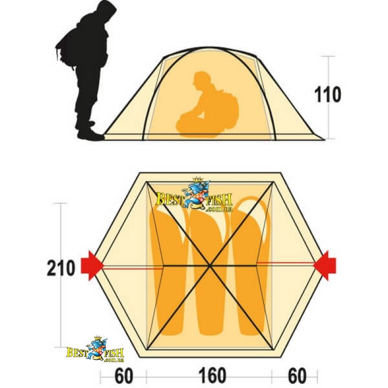 • Внутренняя палатка (ДхШхВ), мм: 2100 х 1600 х 1100