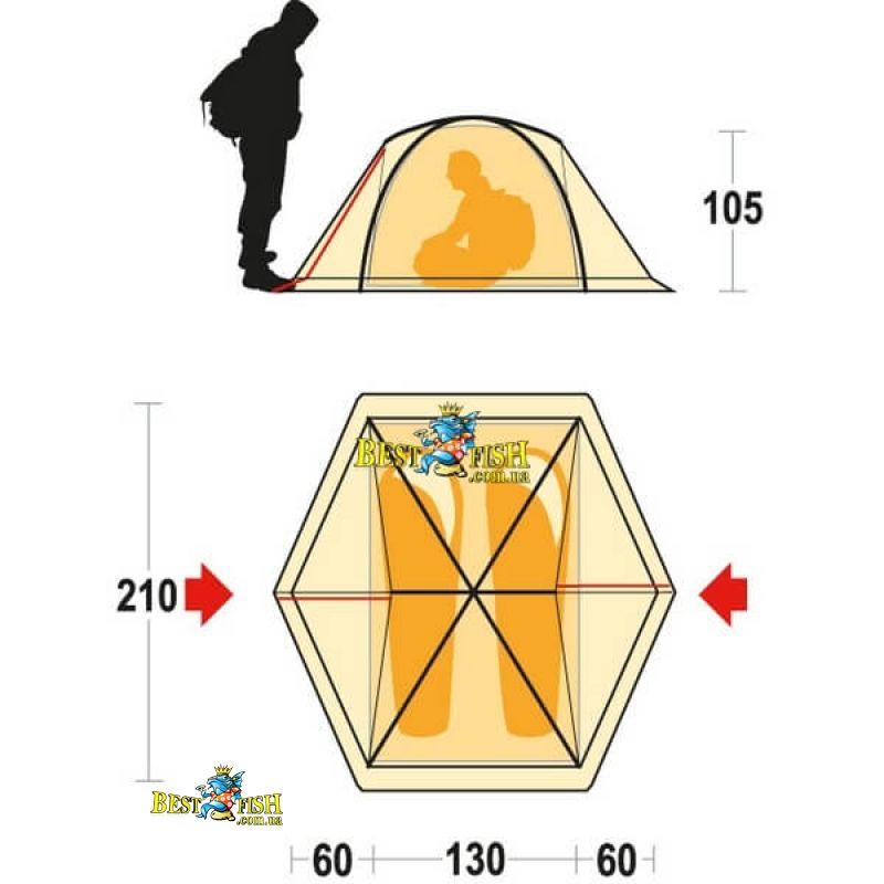 • Внутренняя палатка (ДхШхВ), мм: 2100 х 1300 х 1050