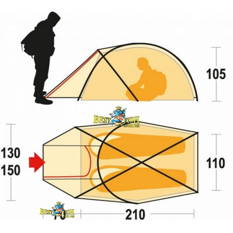 • Чохол намети оснащений двома компресійними ременями на фастексах і має ушиту інструкцію встановлення намету