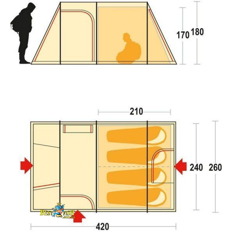 - Внешняя палатка (ДхШхВ), мм: 4200 х 2600 х 1800