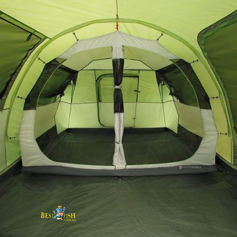 - Внутри палатка разделяется на 2 помещения съемной текстильной перегородкой, фиксируемой в специальных петлях